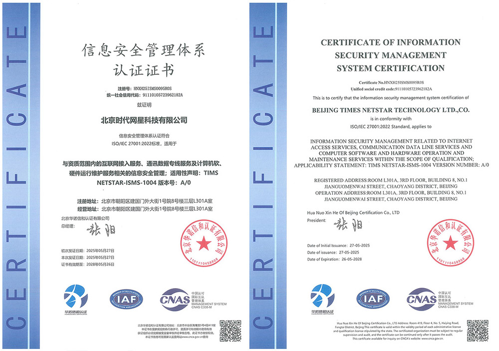 在數(shù)字化轉(zhuǎn)型中,數(shù)據(jù)安全是關(guān)鍵,時代網(wǎng)星引入信息安全管理體系,為轉(zhuǎn)型筑牢安全基石 —— 不僅保障數(shù)據(jù)全生命周期安全、降低業(yè)務(wù)中斷風(fēng)險,更讓管理效能實(shí)現(xiàn)質(zhì)的提升。 依托認(rèn)證成果,公司充分發(fā)揮技術(shù)與行業(yè)經(jīng)驗(yàn)優(yōu)勢,為客戶提供定制化一站式解決方案。針對不同行業(yè)的數(shù)據(jù)安全需求,以個性化存儲方案與加密技術(shù)構(gòu)建防護(hù)屏障,確保數(shù)據(jù)安全無虞。 公司將以認(rèn)證為起點(diǎn),持續(xù)提升服務(wù)水平,助力企業(yè)無憂推進(jìn)數(shù)智化轉(zhuǎn)型,與客戶共創(chuàng)數(shù)智經(jīng)濟(jì)新未來。